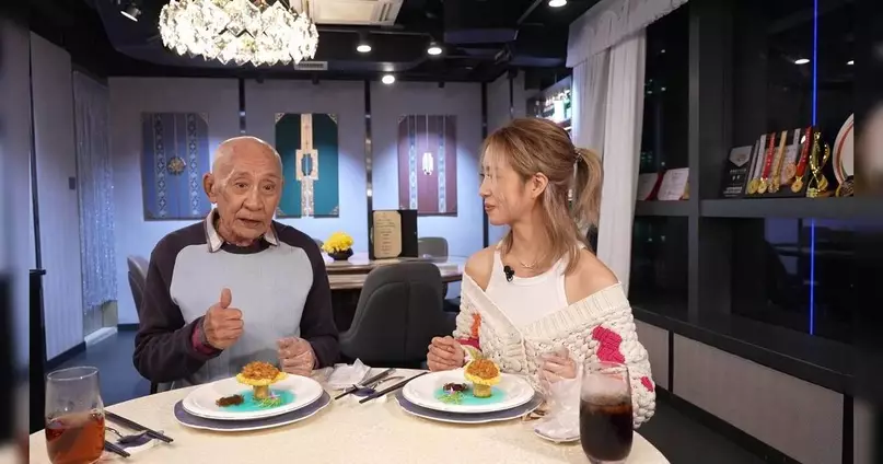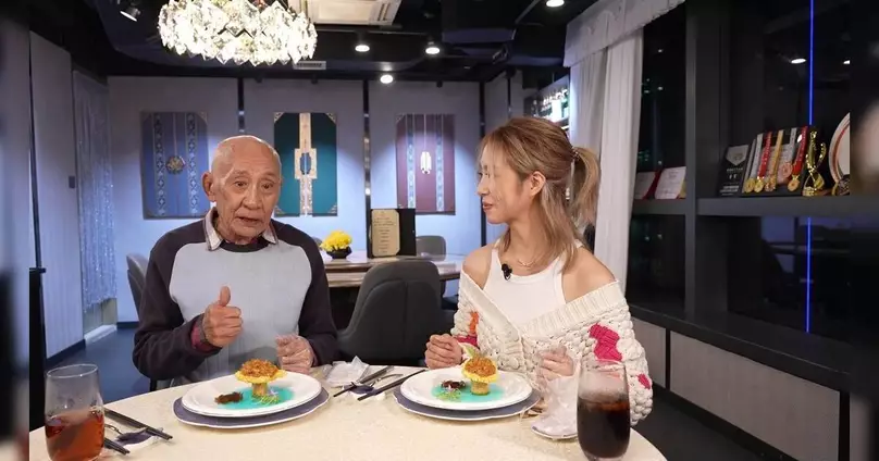 鼎爺與胡美貽今次到訪的餐廳,主打新派上海菜,兩人品嚐了三款必試的得獎菜式,分別是「菌皇龍蝦球」、「白松露和牛盒」,以及充滿傳奇色彩的「鶴湖蟹影」。單看菜名已極具氣派,而「鶴湖蟹影」的真身原來是蟹粉鍋巴,是淮揚菜中的一道經典菜式,其背後的故事更為這道美食增添了幾分神秘感。