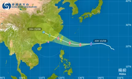 台灣颱風楊柳最新消息|天文台表示,楊柳會在未來兩三日逐漸增強並向偏西方向移動,大致移向台灣一帶。東方新地整合颱風路徑、預測位置等,亦提供颱風影響下的受影響航班、旅遊保險賠償資訊。