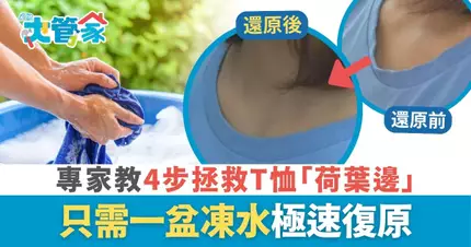T恤款式多又價廉物美,一年四季都適合穿著。然而尤其是用料稍遜的T恤,經多次機洗後衫領位容易變鬆變形,形成俗稱的「荷葉邊」,對外觀影響甚大,最後下場一般會從「出街衫」降格變成「睡衣」。有日本洗衣專家就提出1個簡單做法,只需4個步驟即可讓T恤的領口恢復挺直,外觀即刻恢復如新。