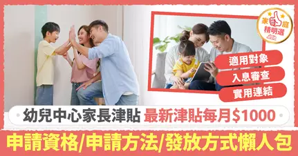 香港「幼兒中心家長津貼」自2024年4月起提升至每月最高$1,000,有效協助職業家庭及照顧者減輕育兒財政壓力。津貼覆蓋所有受政府資助的獨立幼兒中心及附設於幼稚園的幼兒中心,並適用於正在接受全日制資助服務的幼兒家長。申請無需入息或資產審查,只要通過所屬中心遞交申請,即可直接受惠。本文完整整理「幼兒中心家長津貼增至$1000」的申請資格、申請方法及發放方式,並附有懶人包對照表,助您快速掌握所有資訊。