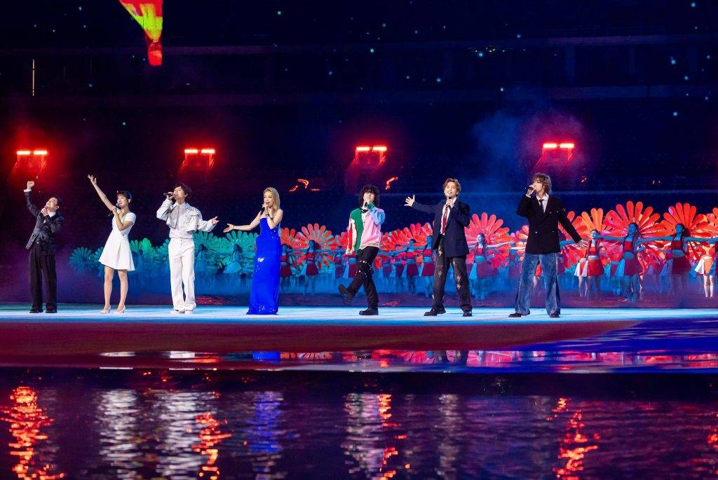 「2025第十五屆全國運動會」開幕禮昨晚於廣州的廣東奧林匹克體育中心舉行,容祖兒與師弟曾比特企正C位,配合搖滾樂隊Daze In White兩位成員鄭宗健及李肇航,四個單位組合勁有新鮮感。歌曲《龍騰伶仃洋》氣勢磅礴,隔住個Mon都feel到震憾感,現場觀眾反應熱烈。整個「第三章《同夢同圓》:成世夢圓」環節由祖兒等人與另外三個單位共同演出,場面相當壯觀。