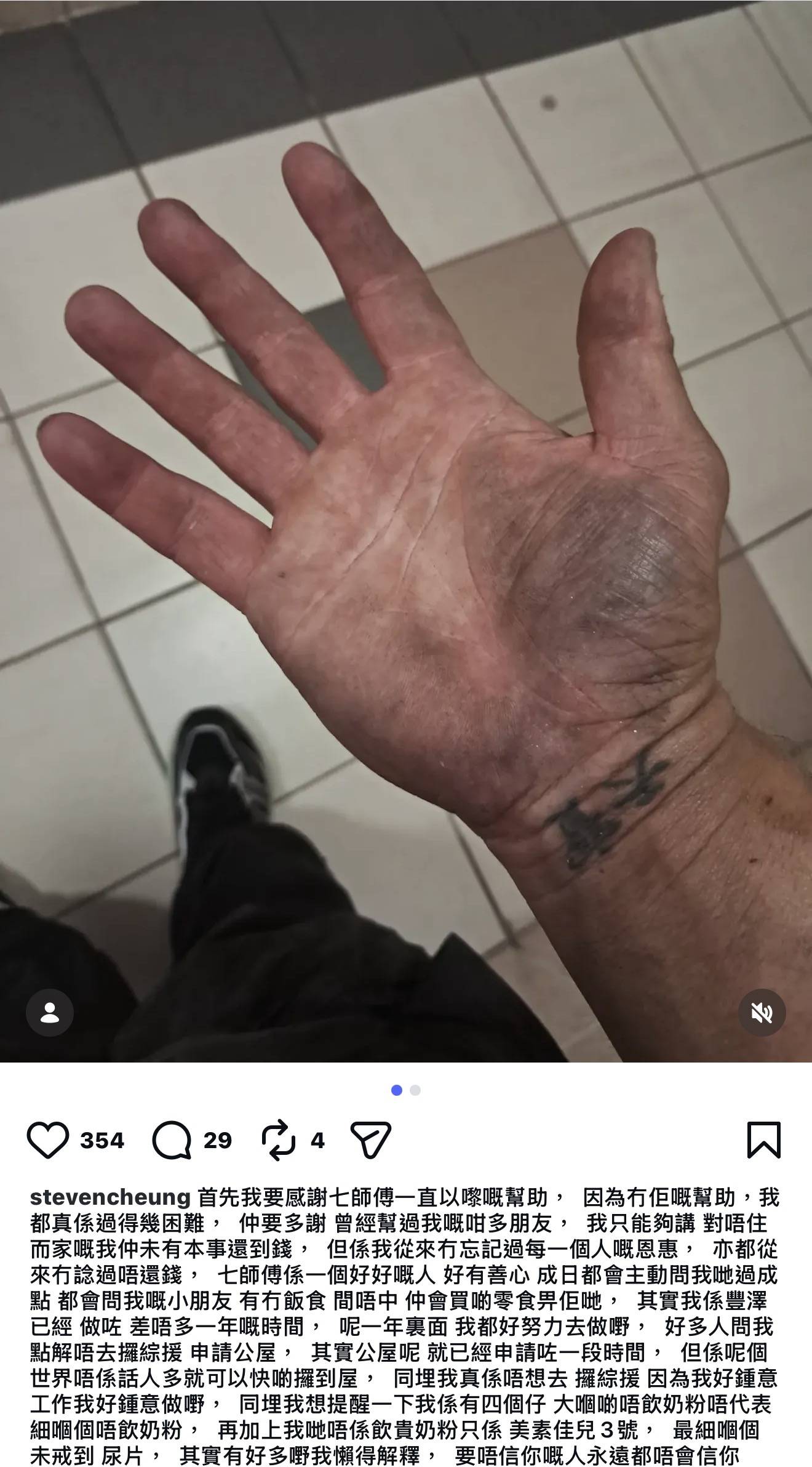張致恒親自發聲道歉 感謝七師傅一直幫助