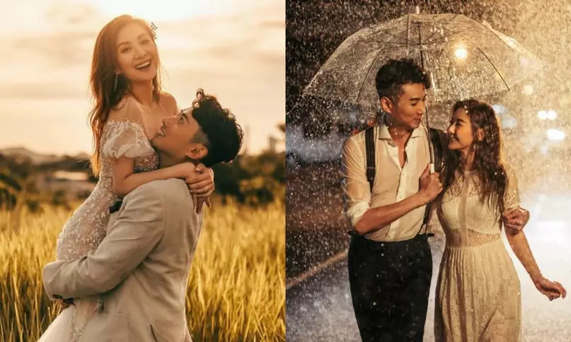戴夢夢分享了兩輯婚照,一輯是在黃昏草原上,另一輯是雨中街景,準新娘話兩輯相都好鍾意,當日由黃昏影到晚上,影了六小時,她指攝製隊為營造雨景而book了一部水車,夢夢同未婚都全身濕透,她說:「我好鍾意呢輯淋雨婚紗相,淋雨淋足兩個鐘,入夜已有秋意,濕身有啲凍,因為係咁落大雨,好似黑色暴雨咁,我一邊影一邊啲假雨水入晒口,仲飲咗好多,雖然辛苦,但出嚟效果好靚,都影得開心,好似我哋風雨同路嘅感覺。」