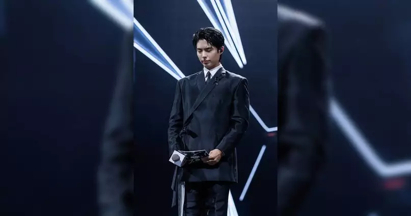 朴寶劍一身黑西裝扣黑絲帶主持MAMA(圖片來源:TVn)