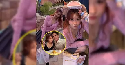 李蔓瑩在社交平台發放的短片中,以男友視角拖著另一人進入主題樂園,畫面溫馨甜蜜。她穿上粉紅色上衣配搭灰色短裙,大方展示修長美腿,頭戴卡通帽配合樂園氛圍,造型心思十足。整日行程由朝玩到黑,Renee在園內跳跳紮紮回復童真,與各種卡通人物擁抱互動,玩得相當盡興。最引人注目的是,她全程與身邊人拖手,動作親密自然。