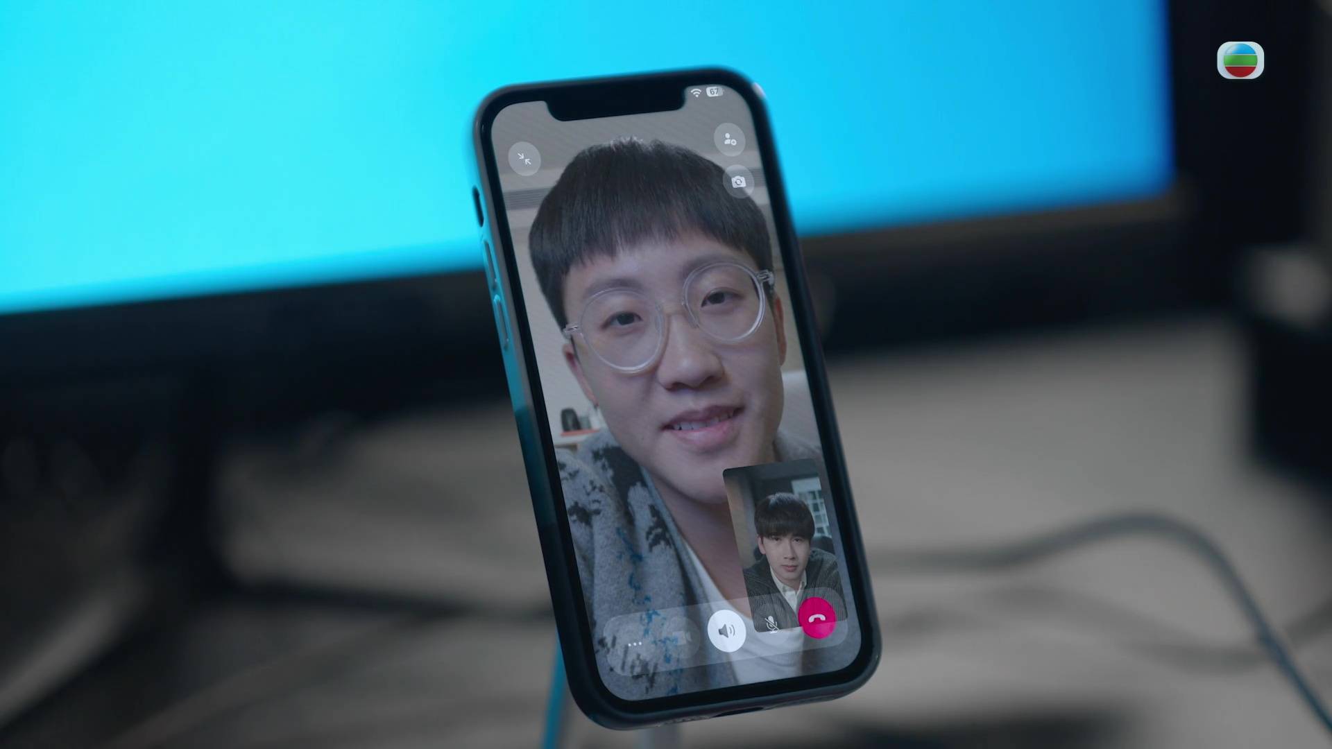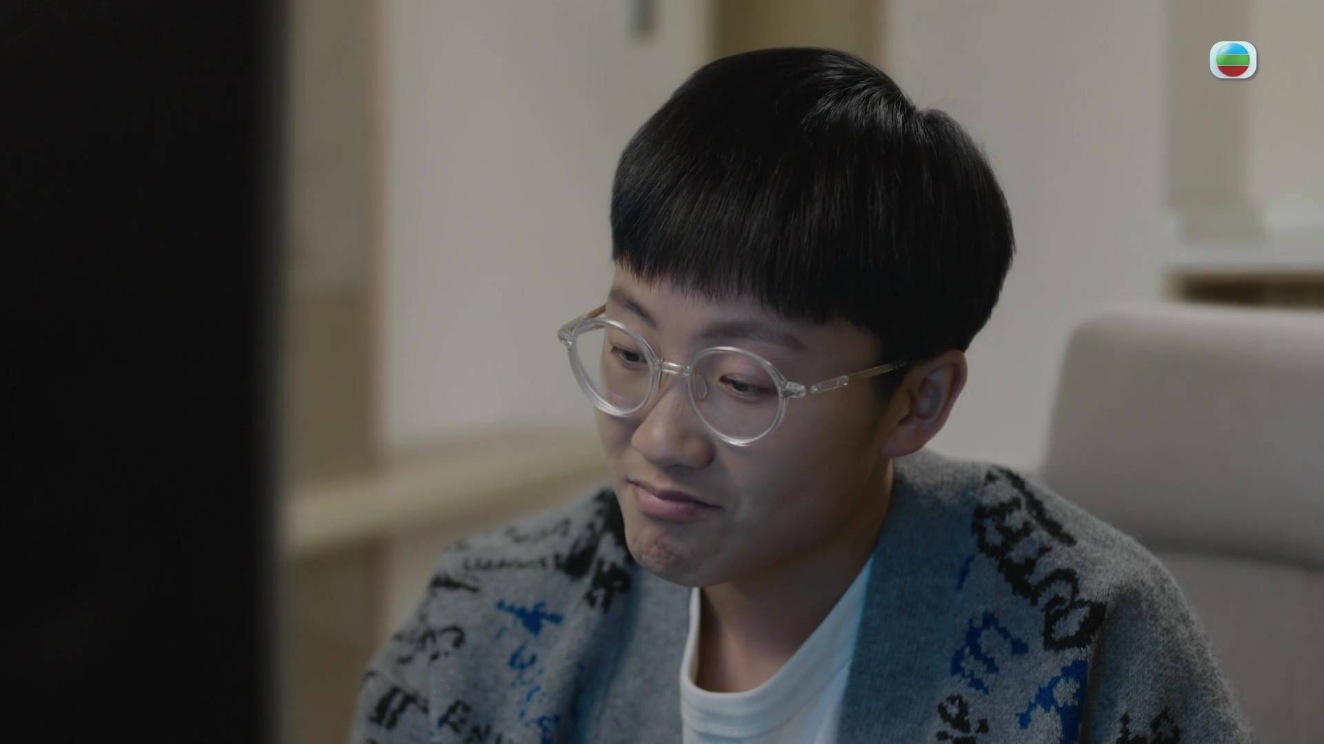與張景翔(馮皓揚飾)「志趣相投」的神秘網友身份曝光,正是被高淑樺(陳煒飾)「軟禁」的高成彬(劉倬昕)。(圖片來源:TVB)
