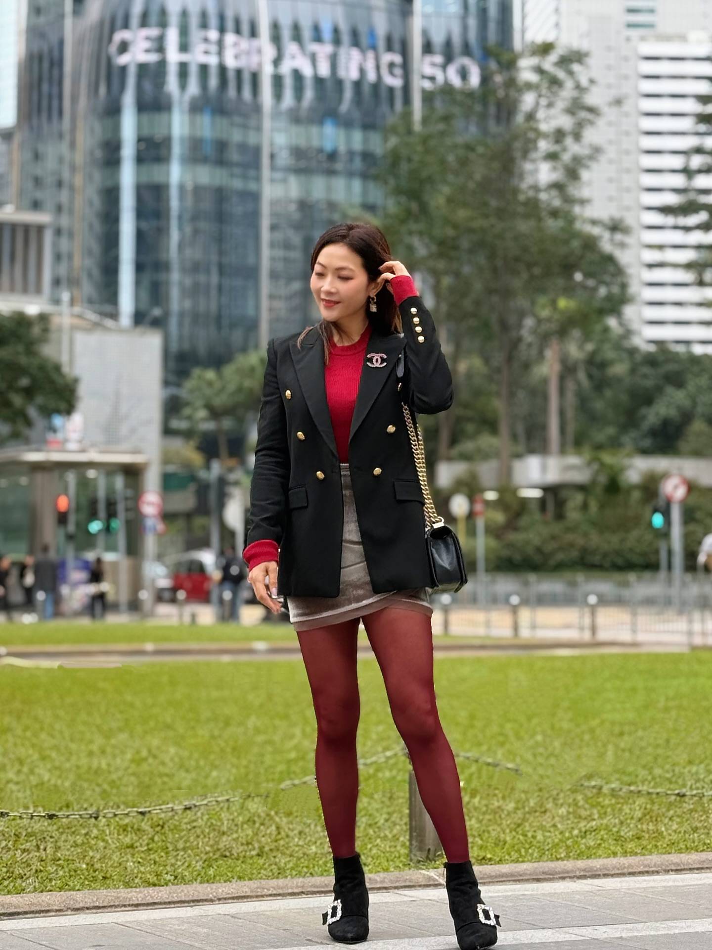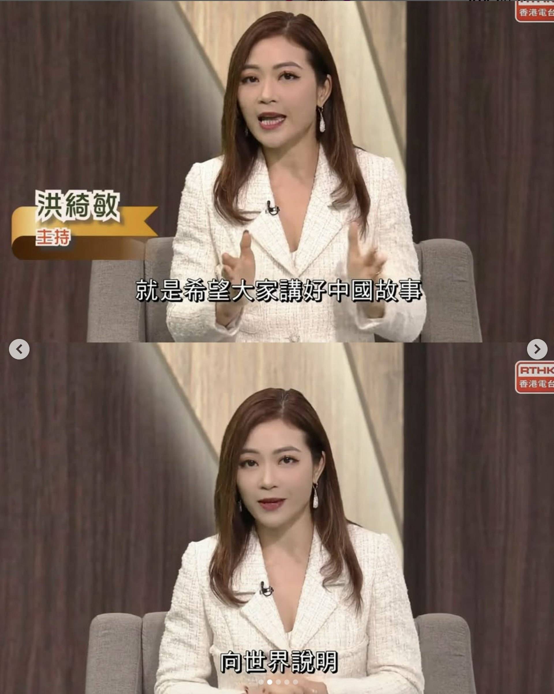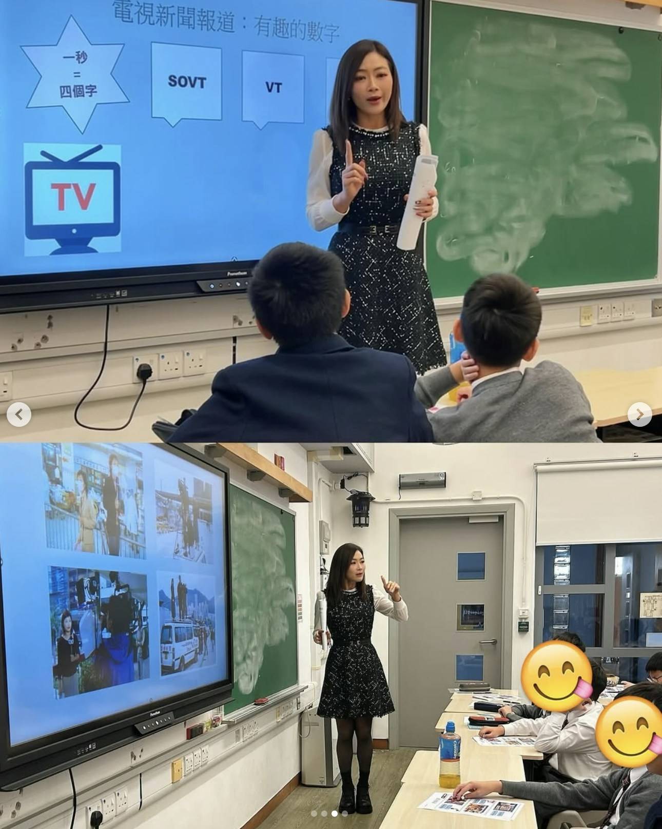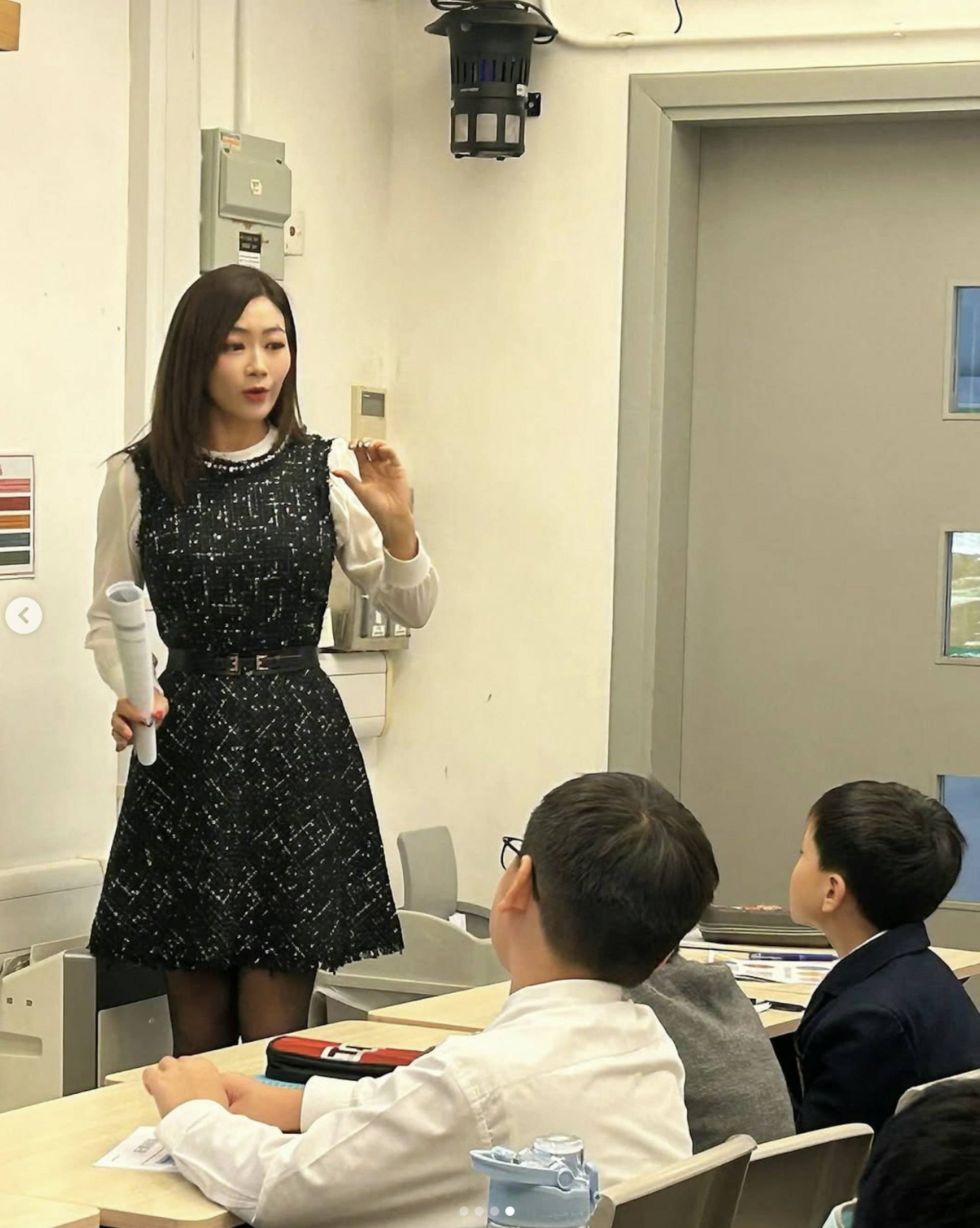 洪綺敏去年在Instagram發文分享重返校園的喜悅:「2025年伊始,又係時候新學期返回校園 教小主播小記者課程 喜歡同小學生們互動 呢班同學亦頭腦靈活 觀察力強 睇得出佢哋平時都好留意新聞報道嘅細節 鏡頭前後嘅運作同故事 對佢哋更了解時刻收看新聞嘅大小意義 更有幫助」。相片中的她穿上連身裙及黑絲襪,造型端莊得體卻不掩女人味,46歲的她身材依然保持得相當不錯。
