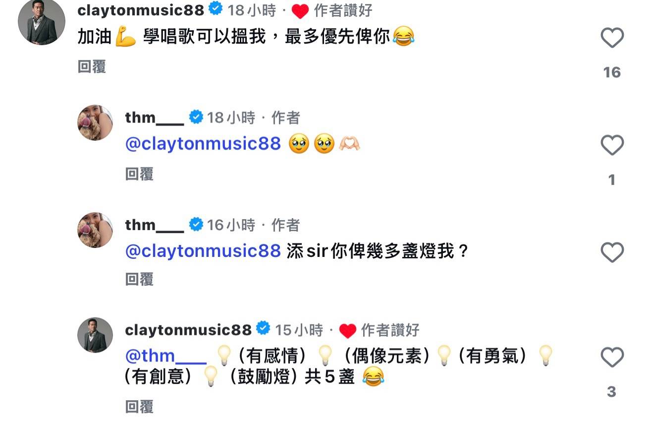 張佳添主動留言激讚給足5盞燈