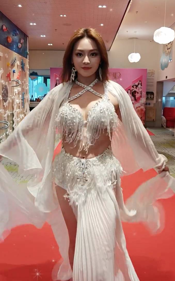 關嘉敏昨日(20日)在Instagram分享參加內地肚皮舞比賽的短片,帖文中自嘲寫道:「sorry 貪玩 突然間變咗恐怖姐姐」。片段中她身穿一襲飄逸白色閃鑽舞裙,貼身剪裁完美展現零贅肉纖腰和修長美腿,配上相當突出驚艷的濃妝造型,以自信姿態走完紅地氈,華麗轉身時氣場全開,女神級魅力盡顯。這個造型與平日清新形象形成強烈對比,令人眼前一亮。