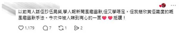 曾被指模仿伍晃榮今次獲網民肯定