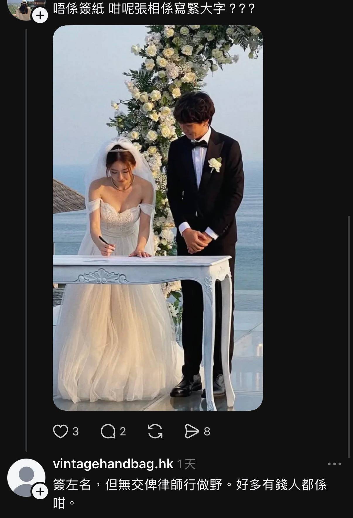 Giann的離婚宣言在網上引起激烈討論(圖片來源:threads)