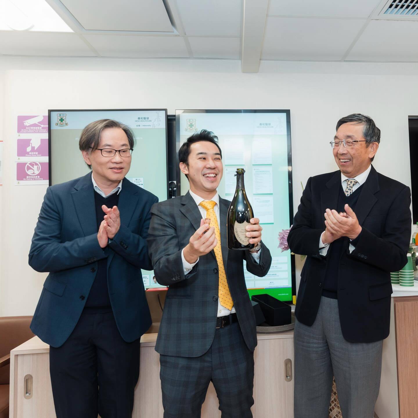 為了慶祝麥明山履新,麥明詩與父母一同到養和醫院整形外科中心表示支持。從曝光照片可見,一家人齊聚在麥明山的新辦公室內,背景正是令人羨慕的開揚維港景色,場面十分溫馨。麥明詩更與哥哥在「Plastic & Reconstructive Surgery Centre 整形外科中心」招牌前合照,兄妹情深展露無遺。現場氣氛熱鬧,眾人開香檳慶祝分享喜悅,可見這個學霸世家對麥明山加盟頂級私院的重視程度。