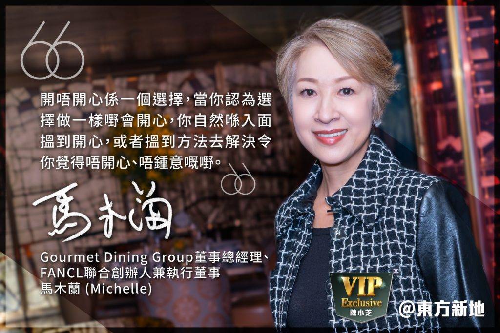2021年,Michelle榮獲法國駐港澳總領事頒發「農業成就勳章」,以表揚她對法國美食文化的貢獻。她的餐飲集團就是水準的保證。她行動力十足,遇到壓力時又如何去紓解?她有甚麼情緒平衡的妙法?