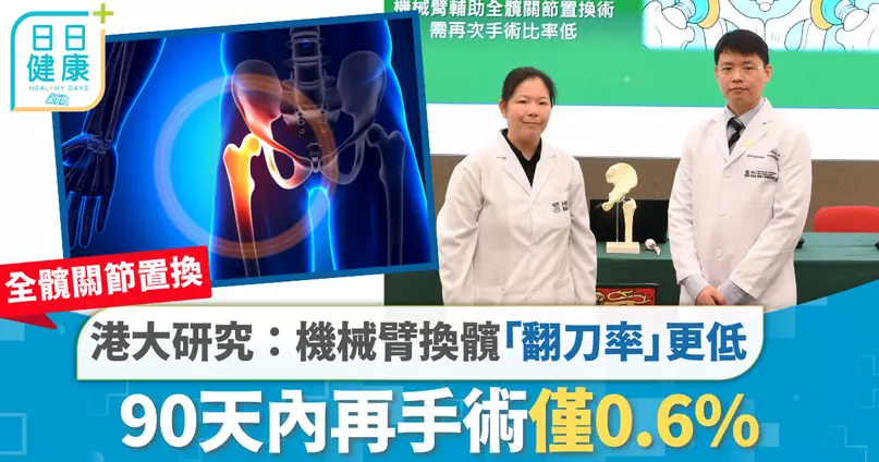 全髖關節置換|港大研究:機械臂換髖「翻刀率」更低 90天內再手術僅0.6%