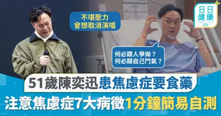 焦慮症|51歲陳奕迅患焦慮症要食藥 注意焦慮症7大早期病徵 1分鐘簡易自測心煩易怒屬警號