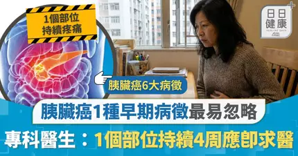 胰臟癌病徵|胰臟癌1種早期病徵最易忽略 專科醫生:持續4周應即求醫 中年突發患糖尿同屬警號