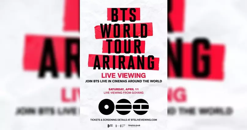 流行天團 BTS 重返全球舞台,帶來萬眾期待的世界巡演,睽違四年,盛大回歸。82 場演出,橫跨全球 34 個城市,於南韓高陽與日本東京揭開巡演序幕,創下韓國歌手最多巡演場次的新紀錄。兩場足本演唱會,全球戲院現場直播,不容錯過。BTS 世界巡演《ARIRANG》,搭配第五張完整專輯登場,將思念、深情等普世情感與真誠自省融入音樂之中,以獨特風格展現團體鮮明的個性。壯觀 360 度環形舞台,沉浸式體驗全面展開,讓觀眾置身表演正中心。BTS 劃時代回歸演出,4 月 11 日高陽、4 月 18 日東京,登陸全球大銀幕,一同見證震撼時刻。