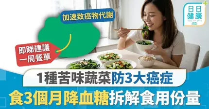 抗癌飲食|1種苦味蔬菜防3大癌症 研究:食3個月降血糖 拆解食用份量推薦1周餐單