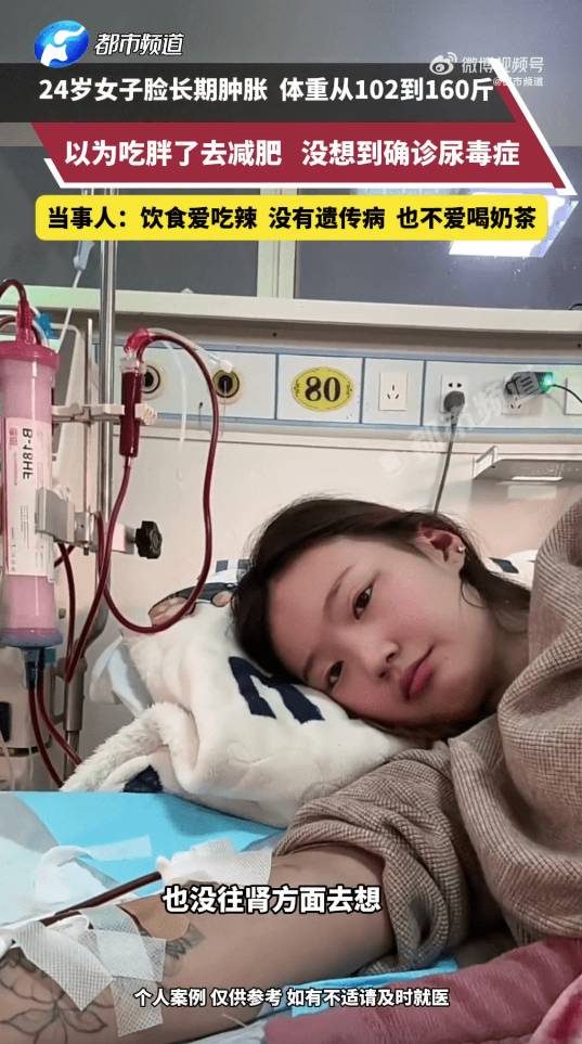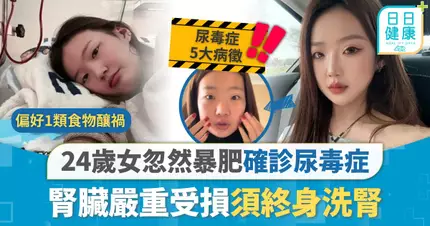 體重突然暴升未必單純因為「食得多」,亦可以是嚴重疾病的徵兆。內地安徽一名年僅24歲的女子,體重在短時間內由51公斤激增至84公斤。事主起初以為只是變肥,勤做運動減肥半年,雖然一度減去25公斤,但隨之而來的是反覆發燒及全身浮腫。最終送院檢查時,驚揭已患上「尿毒症」,病情甚至已屆晚期,腎臟嚴重受損,年紀輕輕便需隔日洗腎維持生命。