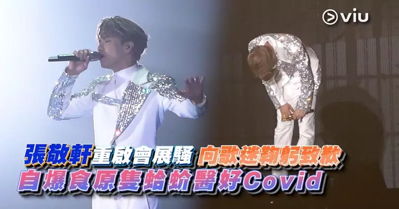 Viu1HK報導:現場實況張敬軒重啟會展騷向歌迷鞠躬致歉 自爆食原隻蛤蚧醫好Covid️