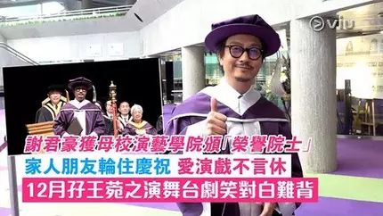 Viu1HK報導:謝君豪獲母校演藝學院頒「榮譽院士」 家人朋友輪住慶祝 愛演戲不言休 12月孖王菀之演舞台劇笑對白難背現場實況